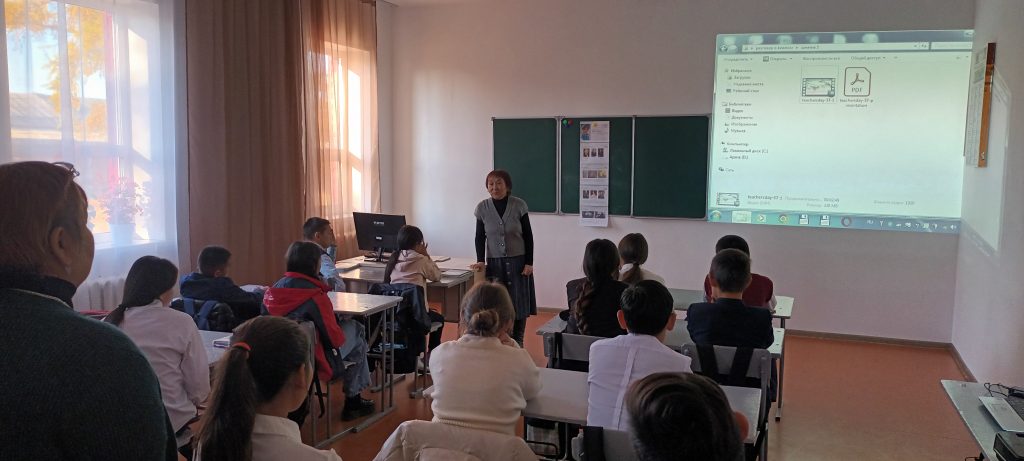 Пригласили педагога-ветерана Почетного работника общего образования Куулар Кара-кыс Танововну. Кара-кыс Танововна побывала на классном часу «Разговоры о важном» в 7б классе ко «Дню учителя». Затронули интересные вопросы насчет будущей профессии школьников. И конечно же поблагодарили нашего ветерана, преподнесли сувенир, сделанный из шерсти ученицей 9 класса Соян Айлазат.